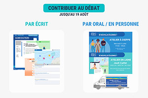 Reprise du débat à partir du 15 juin jusqu'au 19 août : réouverture de la plateforme participative, des outils numériques pour construire votre point de vue et créer votre carte, des cahiers d'acteurs bientôt à disposition, et des ateliers en ligne comme en présentiel.