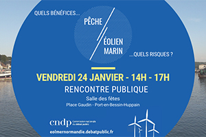 Peut-on faire cohabiter durablement pêche professionnelle et exploitation éolienne ? Venez en débattre ce vendredi 24 janvier à Port-en-Bessin Huppain (14h-Salle des fêtes)