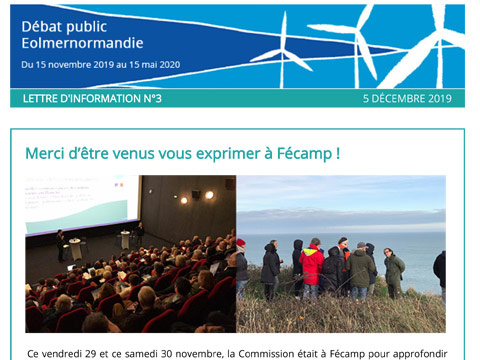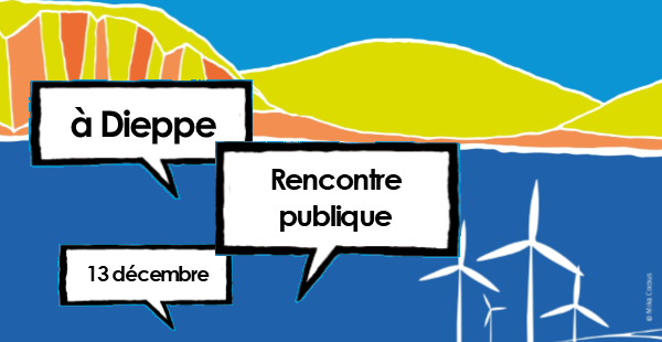 Rendez-vous demain à la Salle des congrès - les Bains de Dieppe pour une rencontre publique de 17h30 à 20h sur les connaissances acquises par les associations, les chercheurs, les opérateurs et les services de l’Etat lors de ces 10 dernières années de débat sur les éoliennes en mer.
