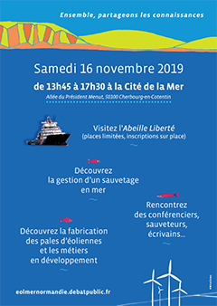 Rendez-vous samedi à la Cité de la Mer, à Cherbourg pour le premier événement du débat, à la rencontre des garants de la sécurité maritime et des fabricants d'éoliennes. Venez nombreux !